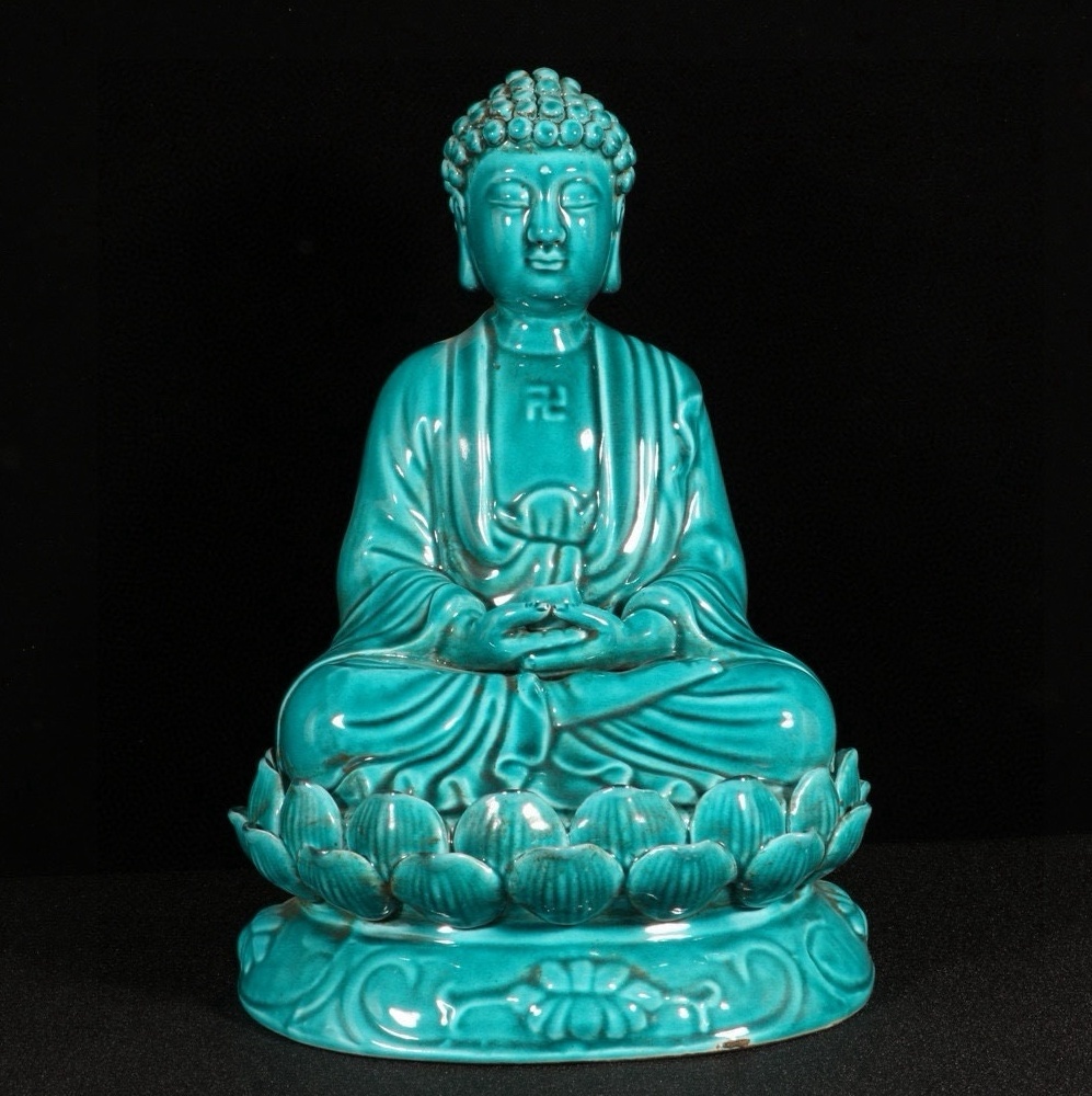 - 清時代 乾隆年製 青釉 釈迦摩尼仏 陶磁器 中国美術 唐物 古美術 置物 高さ26 cm 直径18 cm 819