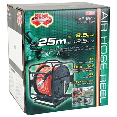 - 沖縄・離島地域発送不可 E-Value エアホースリール 回転台付 25m EAR-825