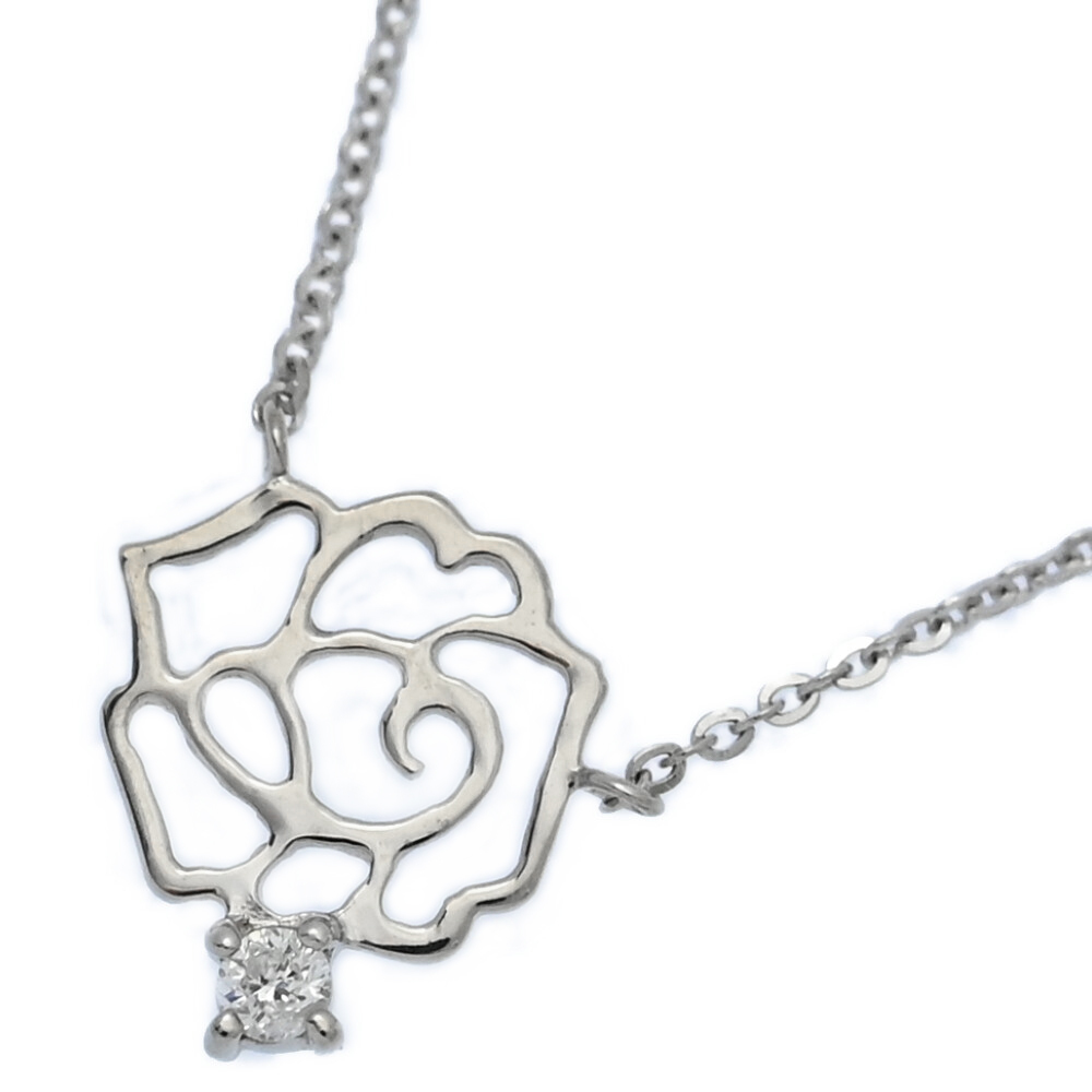 - D:0.03ct/透しのバラ ローズモチーフ ダイヤモンド ネックレス・ペンダント/K18WG/750-1.4g/ホワイトゴールド/プレゼント/記念日■587201