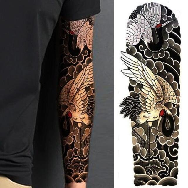 - 【送料無料!タトゥーシール】★鶴 刺青シール 和柄 フェイクタトゥー 11cm×40cm 腕 フルアーム リアル和彫 防水・耐久性あり! (TT-116)