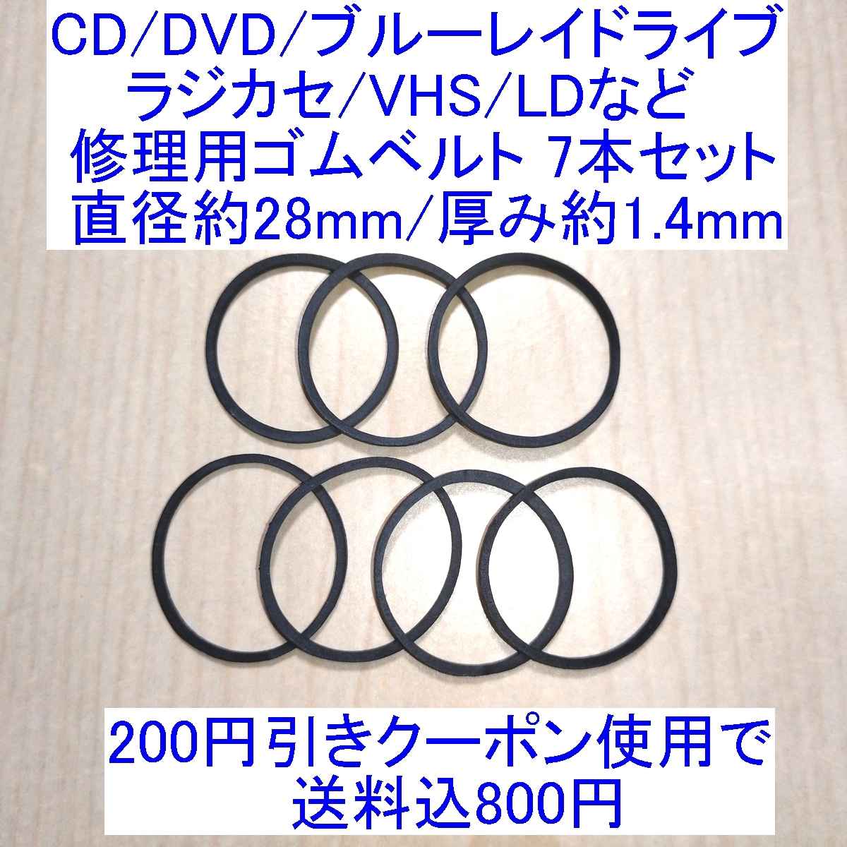 - 【送料込/即決】CD/DVD/ブルーレイドライブ/ラジカセ/VHS/MD/LD用 修理/補修用ゴムベルト 7本セット 直径約28mm/厚み約1.4mm