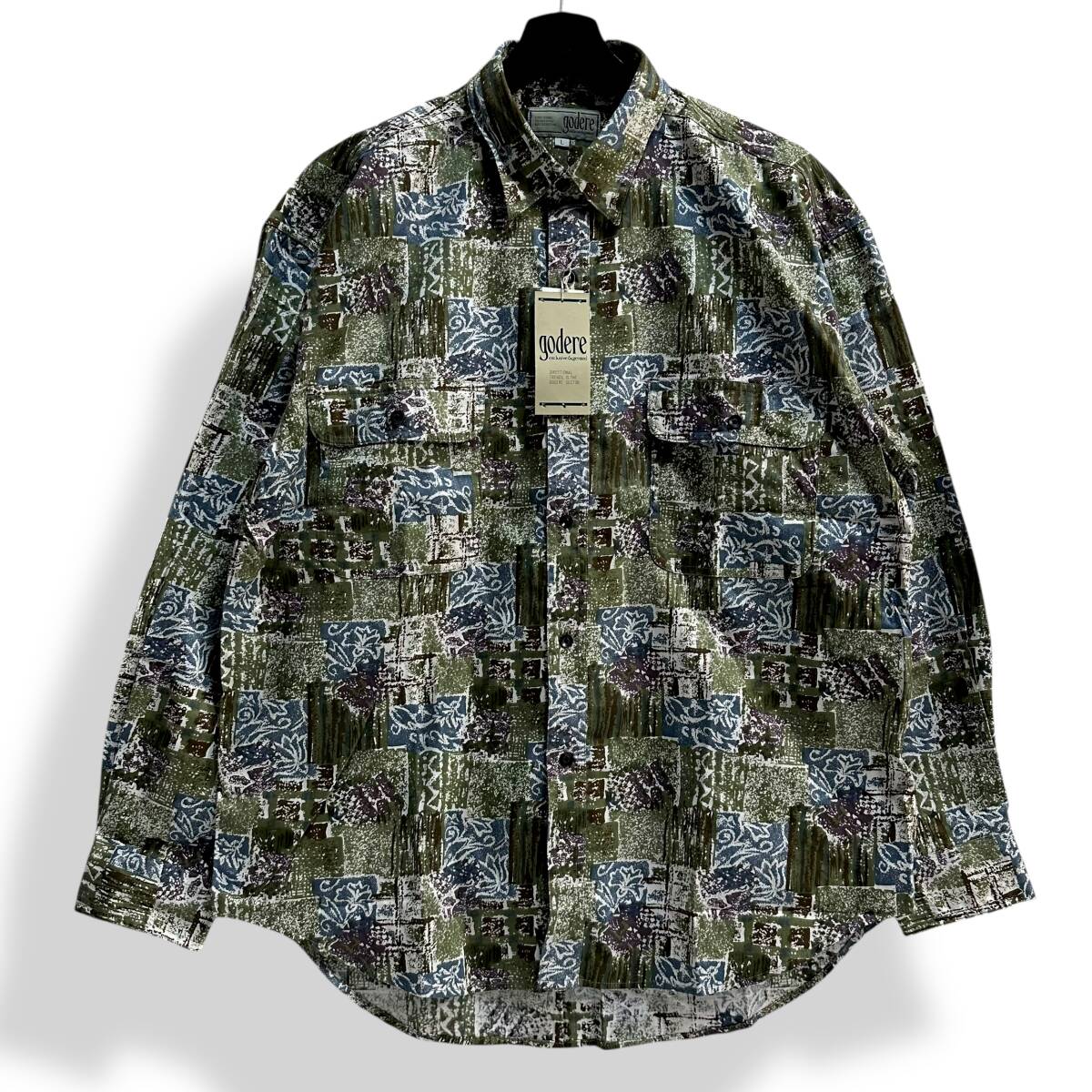 - 貴重 未使用【godere】VINTAGE 80s 90 総柄 アートデザイン ビンテージレトロシャツ デッドストック コットン100% 古着ミックス