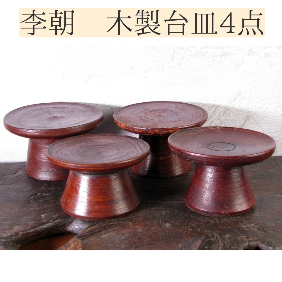 - 李朝 木製 杯台 高杯 台皿 4点 幅:10cm~11.5cm 古民芸/25h036