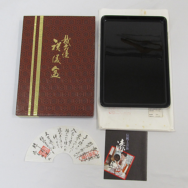 - 越前塗 祝儀盆 漆器 珠美苑 伝統工芸 約16.8x24㎝ 未使用保管品