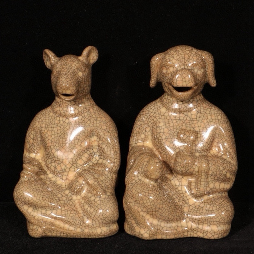 - 珍しい 宋時代 哥窯 大宋御哥款 十二支坐像 古陶磁器 陶芸 中国陶瓷器 唐瓷 置物擺件 古美術品 古賞物 旧家蔵出 中国唐物 820