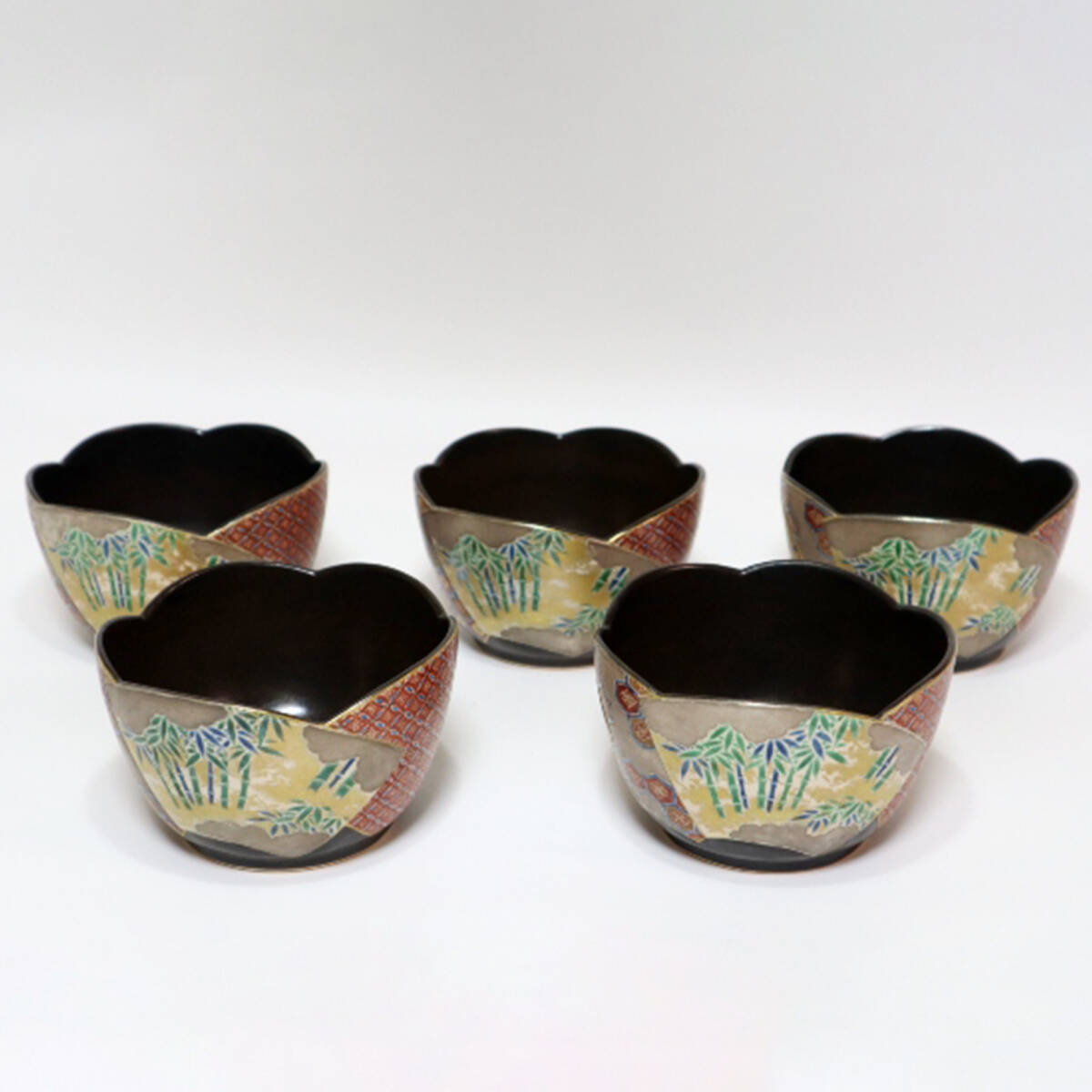 - 楠部彌弌造 色絵瑞祥扇面向付 五客 共箱 うつわ/食器 UT009