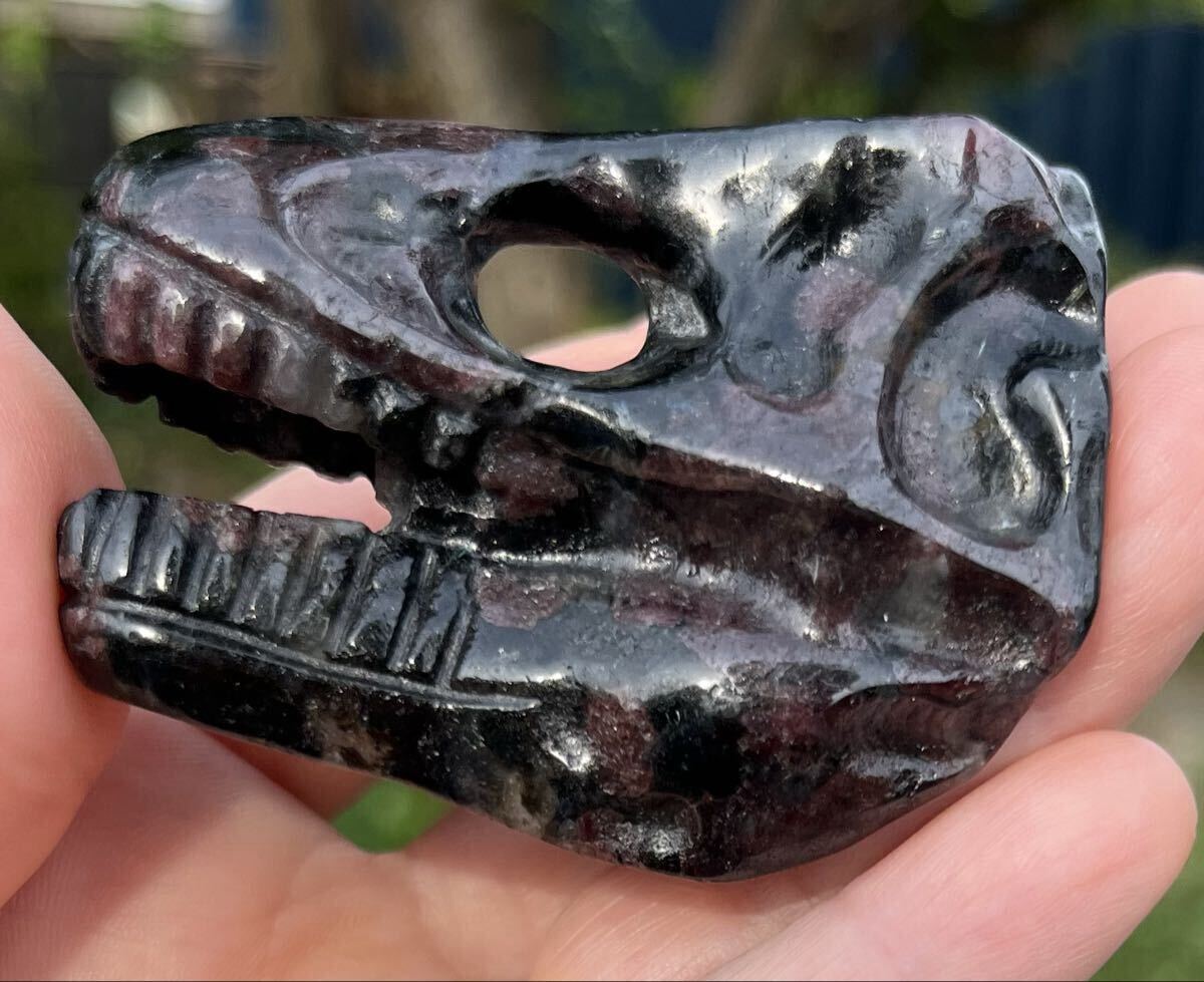 > Goodクオリティー!ジェラシックパーク、ワ-ルドファンの皆様へ ファイヤ-ワ-クス&ガ-ネット天然石のダイナソ-ヘッド 彫刻品 Sale !