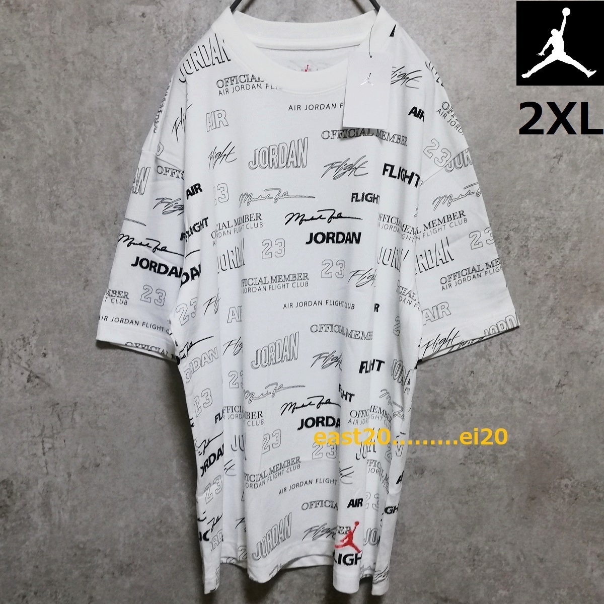- 2XL 新品 NIKE AIR JORDAN FLIGHT CLUB 23 MVP ナイキ エア ジョーダン フライト ロゴ サイン 総柄 Tシャツ XXL 白 未使用 DX9574 送料無料