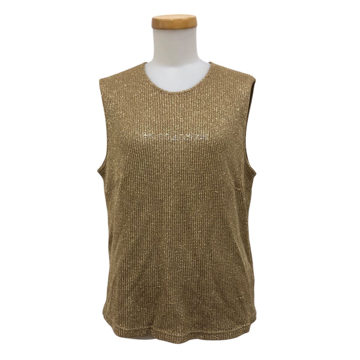 - NC315-10 伊太利屋 イタリヤ 大きいサイズ ラインストーン ニット ラメ糸 ノースリーブ Tシャツ タンクトップ レディース 13 ゴールド