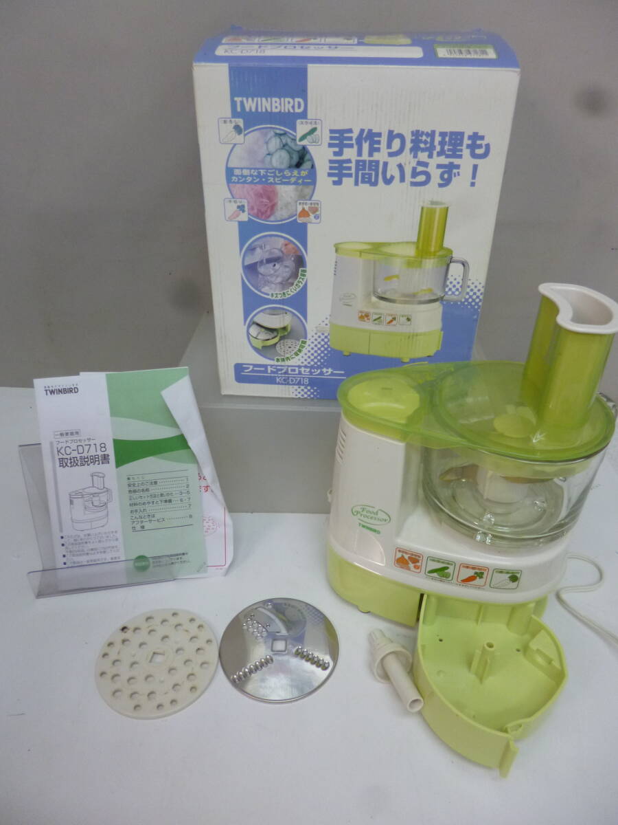 > ★352)フードプロセッサー・ツインバード KC-D718 ガラス容器 箱、説明書あり ※中古品/動作OK/使用感あり■80
