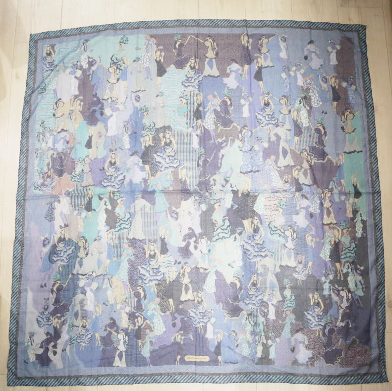 - Salvatore Ferragamo サルヴァトーレフェラガモ モデル柄 コットン/シルク シースルー 140 スカーフ ショール ネイビー M08-k130