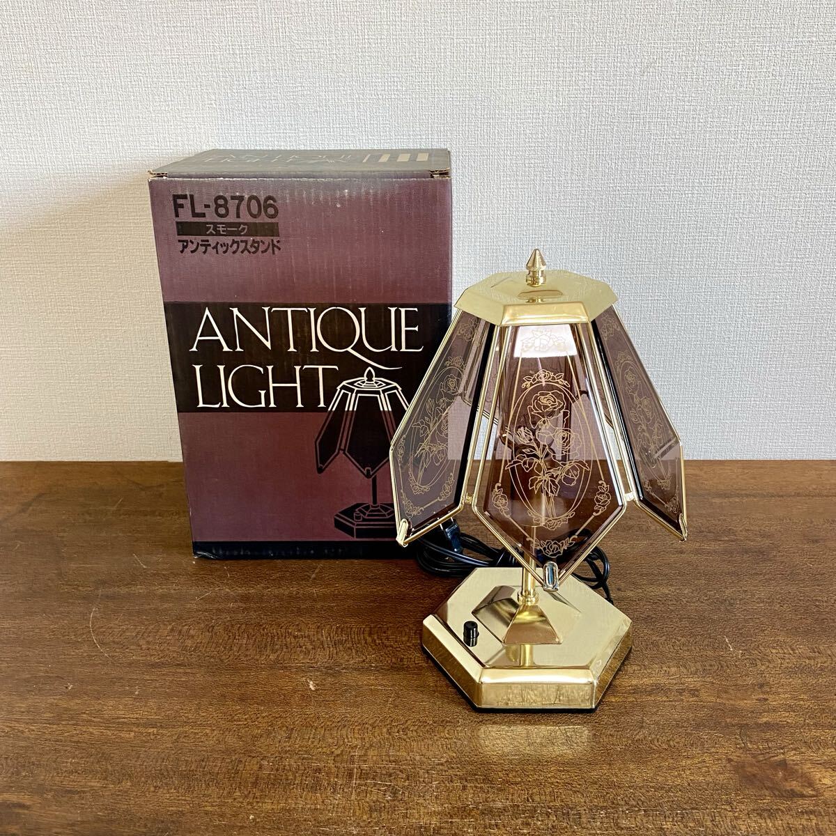 - ヴィンテージ ツインバード テーブルランプ 卓上ランプ / 照明 花柄 箱付き TWIN BIRD 日本製 当時物 【動作品】