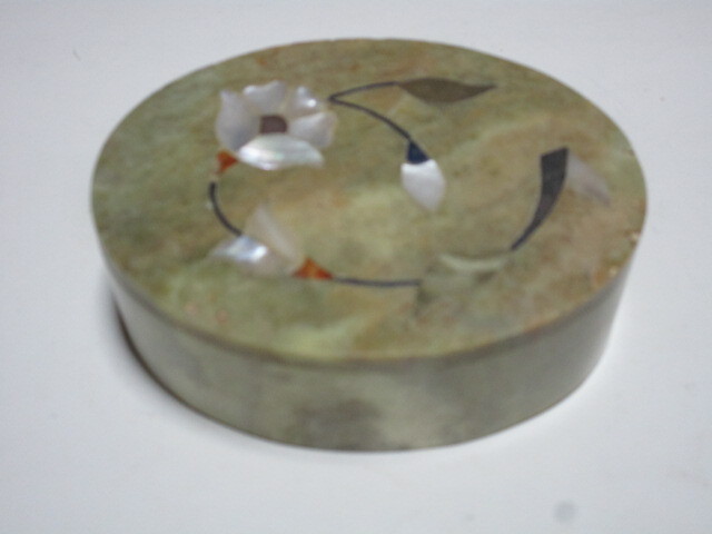 - レア★小物入れ 螺鈿細工 大理石 天然貝らでん 楕円形 アクセサリーケース 小花螺鈿 夜光貝/蝶貝 彫刻 象嵌 ピルケース ポプリ入れ★