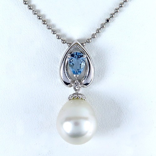- Pt900/Pt850 ★ネックレス パール11.6mm アクアマリン0.57ct ◇ダイヤモンド0.02ct ●最長39.5cm ◆鑑別書付き【中古】/s01103/10005680