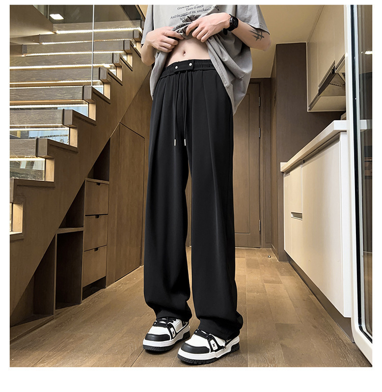 - 新品 メンズ ワイドパンツ カジュアルパンツクール冷感 涼しい大きいサイズウエストゴム長ズボン夏 無地 シンプル 薄手 3色M-5XLブラック