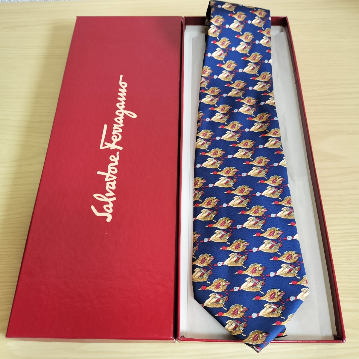 - Salvatore Ferragamo(サルヴァトーレフェラガモ)青鳥飛ぶ模様ネクタイ