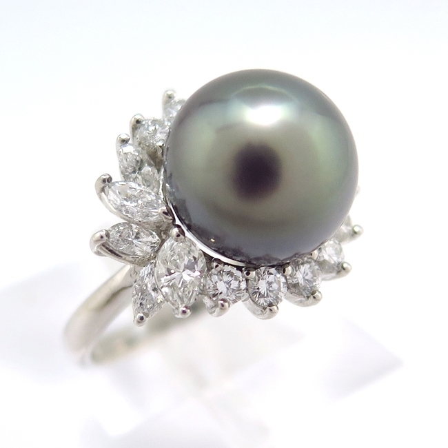 > Pt950 プラチナ 指輪 リング ブラックパール11.630mm ダイヤモンド おしゃれ 冠婚葬祭【中古】/m24847/10002162