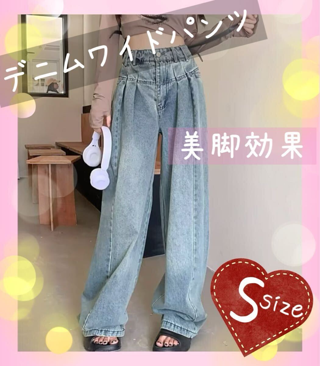 - デニム ワイドパンツ S ハイウエスト タック 着やせ バギーパンツ