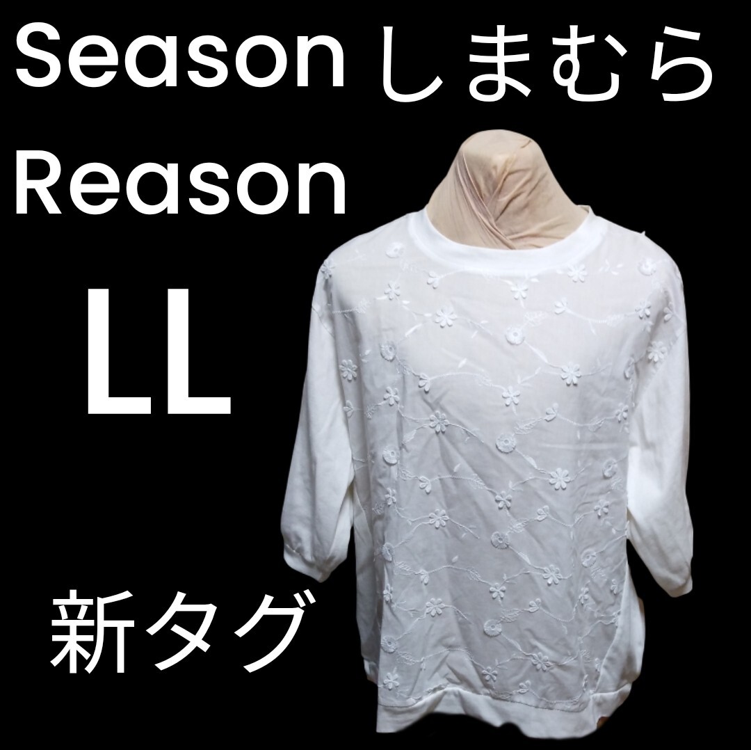 - 今期シーズンリーズン異素材刺繍トップスLL新品未使用タグ付オフ白サイズ感大きめ