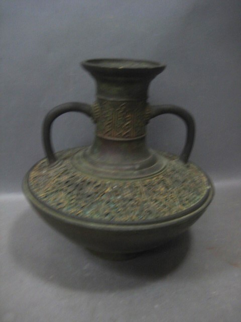 - ☆☆経年保管品 鋳銅 網目唐草 丸耳花瓶 泉 喜泉 約2.2㎏