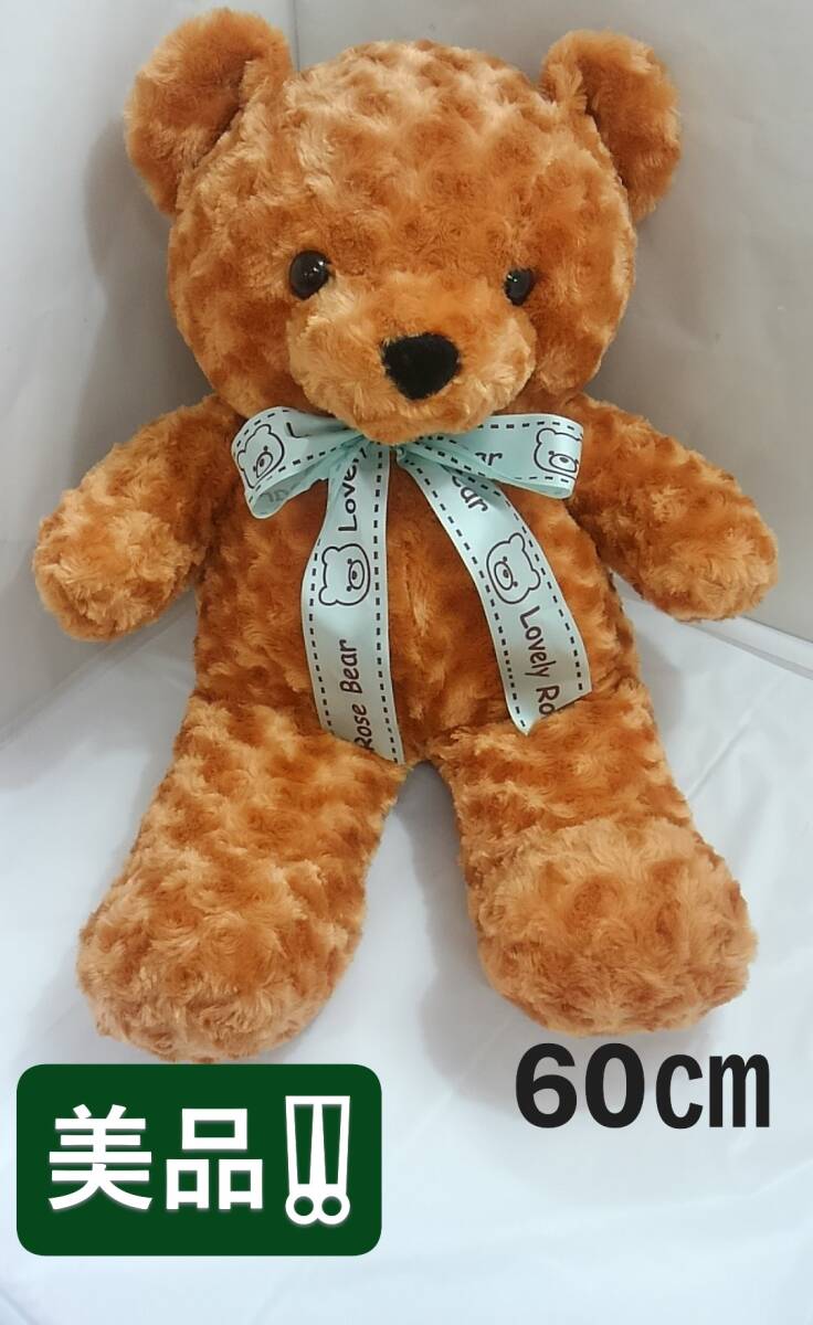 - 【丸-1768】★★美品★ラブリーローズベア【全長約60㎝】明るめ茶色★BIGぬいぐるみ【座高約40cm(おすわりは自立します!★】(IS)
