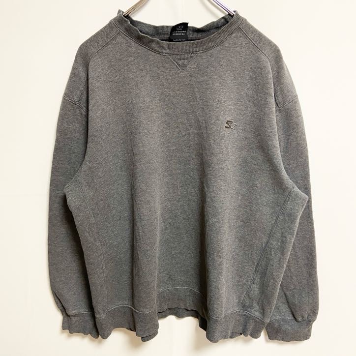 - 古着 used STARTER スターター 長袖ワンポイント刺繍スウェット トレーナー ノームコア クルーネック グレー Lサイズ