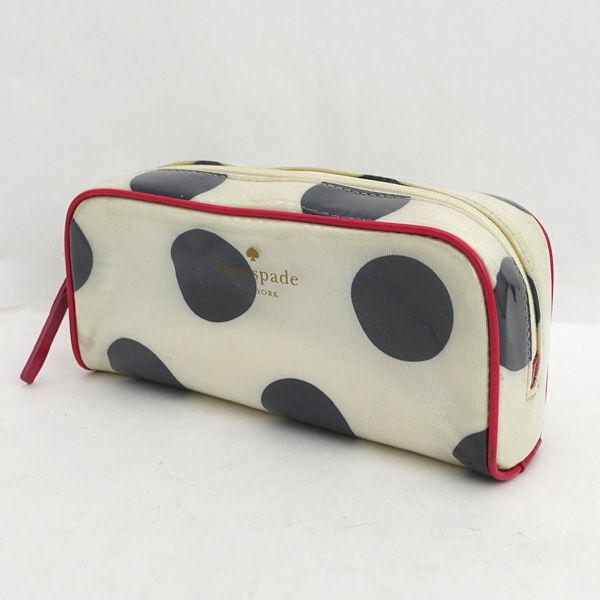 > ★ ケイトスペード ポーチ ビニール 水玉 ホワイト×ブラック PWRU2738(0220507081)