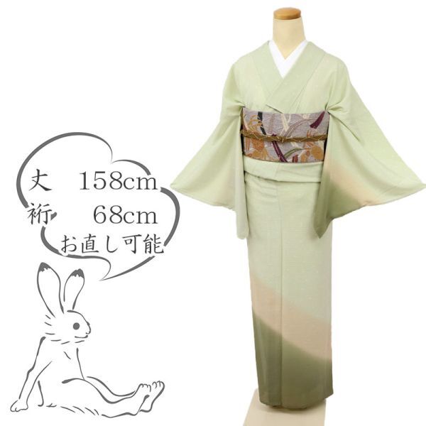 - 【付下げ】 長尺 洗える夏着物 『絽』 霰散らし 淡いグリーン 化繊着物 SG7-6