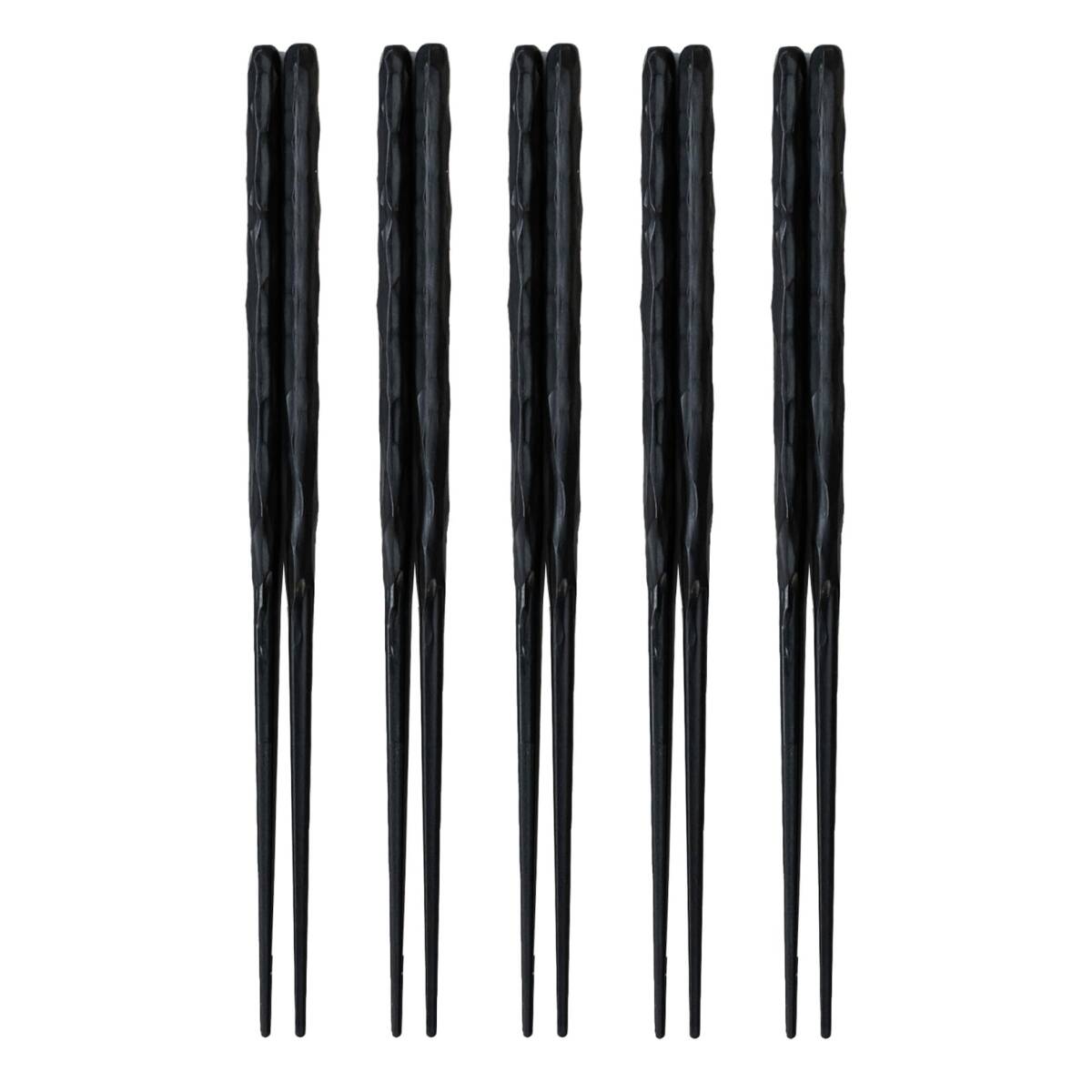 - 樹脂製 来客用 業務用 先角 セット 乱彫 5膳 黒 23cm 日本製 食洗機対応 264871 箸