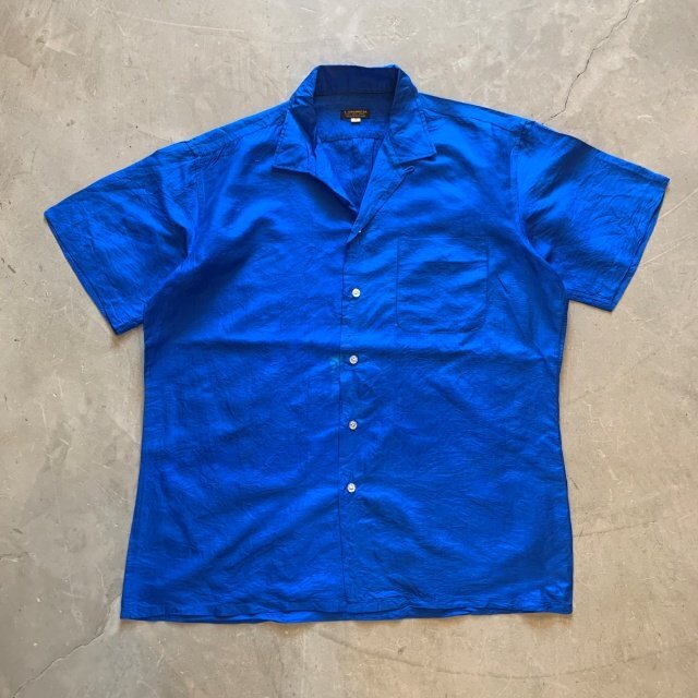 > 【L】タイ製 T.SHINAWATRA ボックス 半袖シルクシャツ ブルー 青無地■ビンテージ オールド アメリカ古着 開襟 オープンカラー
