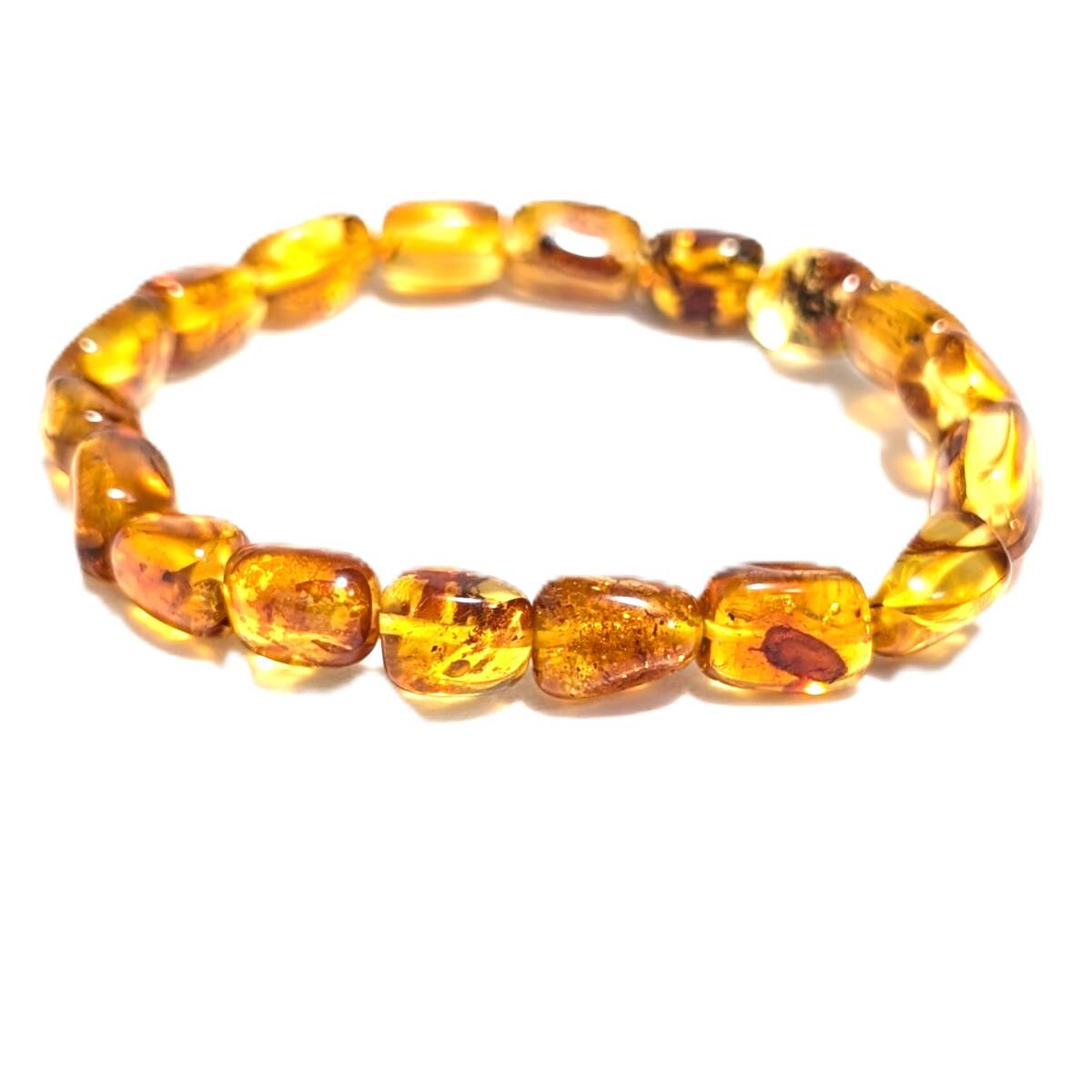 - 天然琥珀 バルティックアンバー タンブル ブレスレット ブラウンカラーで高級感抜群 エナジーストーン お守り ギフト お揃いコーデも人気