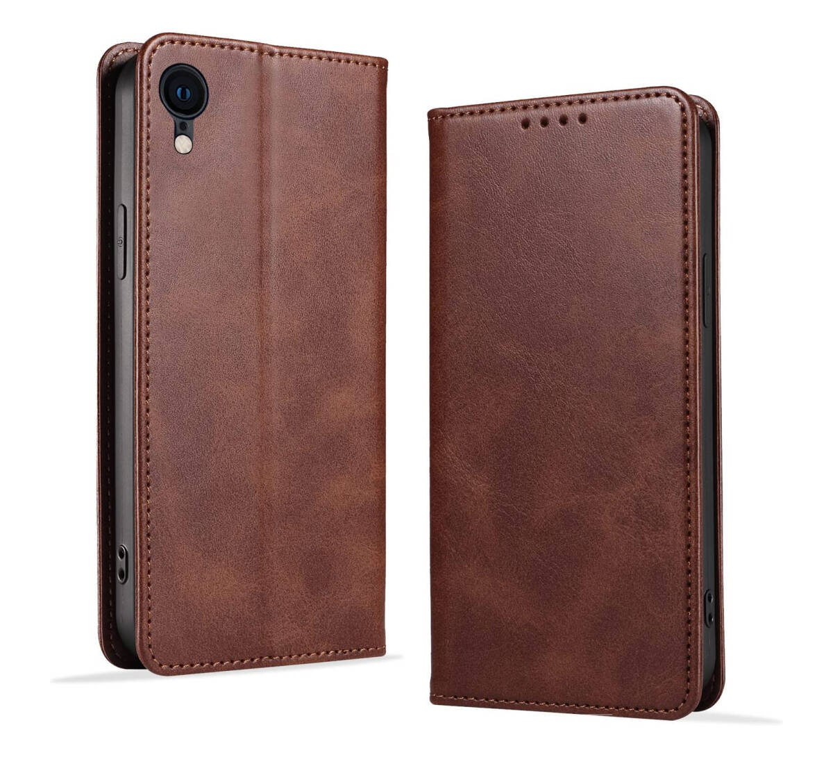 > iPhoneXRケース 手帳型 軽量 マグネット式 カード収納 スタンド機能 衝撃吸収 落ち着いた色 スマホケース ダークブラウン ay664