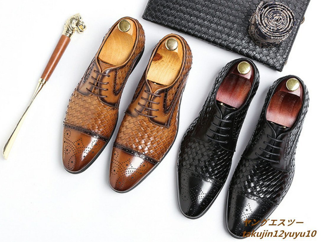 - 最高級 牛革 8万 ビジネスシューズ レザーシューズ メンズシューズ 新品紳士靴 トップレイヤー クラシック本革 手作り編み 黒 26.5cm