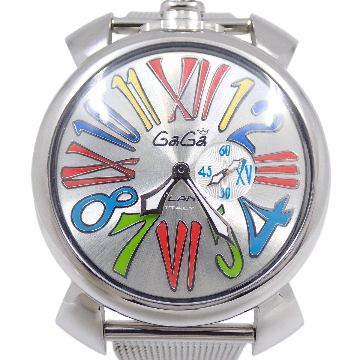 > ガガミラノ マニュアーレ スリム46 クォーツ メンズ 腕時計 マルチカラー×シルバー文字盤 純正SSベルト 5080.1【いおき質店】