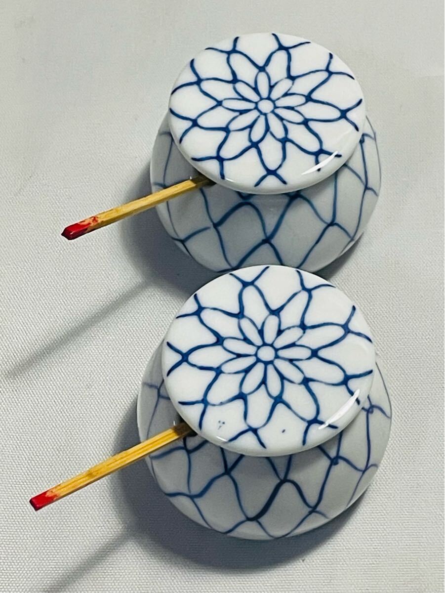 - 未使用品 有田焼 網手薬味入 竹さじ付 2点