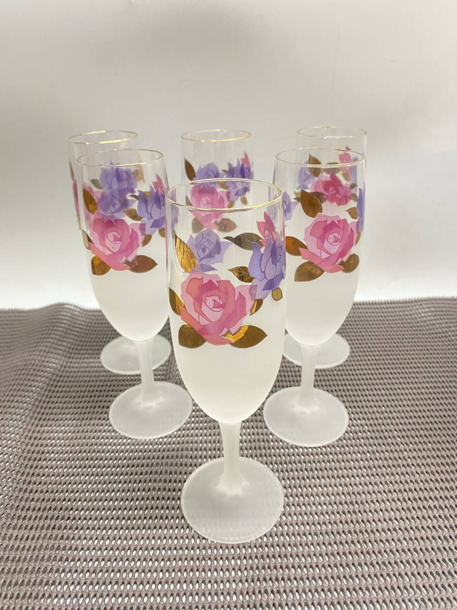 - ●ADERIA GLASS アデリア クラス6客 バラ柄 長期保存品 汚れ塗装ハガレあり 未使用品 現状お渡し(u250822_7)