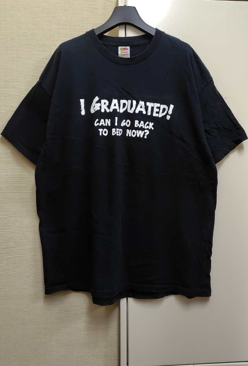 - [送料無料](w27b4)2XLジョークオモシロT卒業グラデュエートusaアメリカ輸入古着半袖プリントTシャツ/I graduated! can I go back to bed?