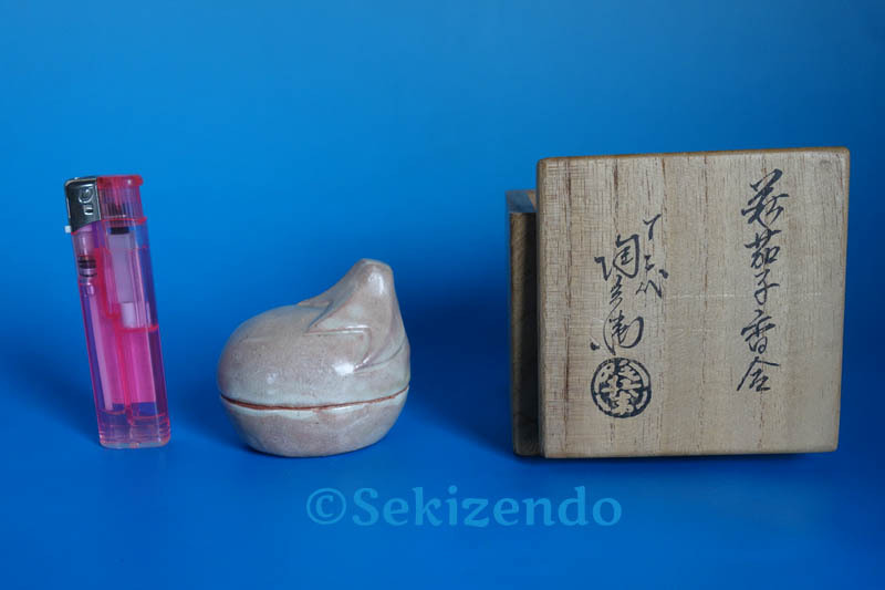 - 萩焼 深川本窯元 田原陶兵衛 茄子香合 茶道具 共箱 田原陶兵衛工房 茄子形香合