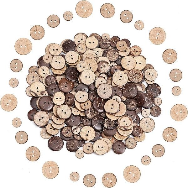- TT-ココナッツボタン 4サイズセット(約240個) 木の実ボタンWOOD木製クラフトボタン