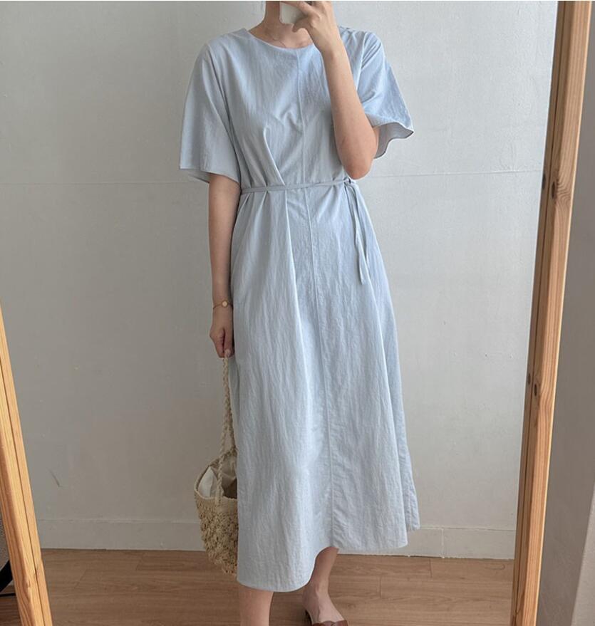 - 新入荷*ロングワンピース 大人 ワンピース オフィス通勤 ロングワンピース レディース ゆったり 大きいサイズ 着やせ 半袖 マキシ丈*ブルー