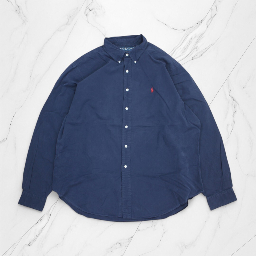 - 古着 Polo Ralph Lauren CLASSIC FIT Shirts Navy ポロ ラルフローレン 長袖 ボタンダウンチェックシャツ 【Vintage】