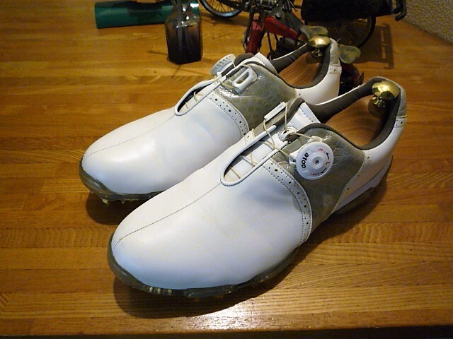 - 美品 AXEL 本革ゴルフシューズ 27㎝ ホワイトxグレー