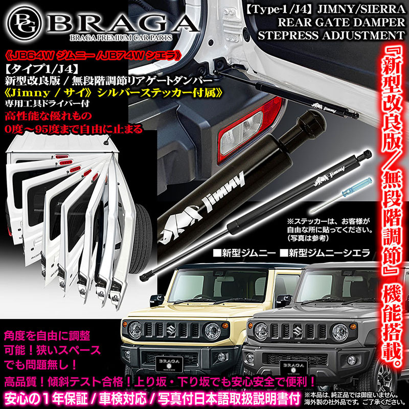 > 新型2025モデル/タイプ1/J4 Jimny & サイ ステッカー付/JB64Wジムニー車・JB74Wシエラ車用/リアゲートダンパー/無段階調整/車検対応/ブラガ