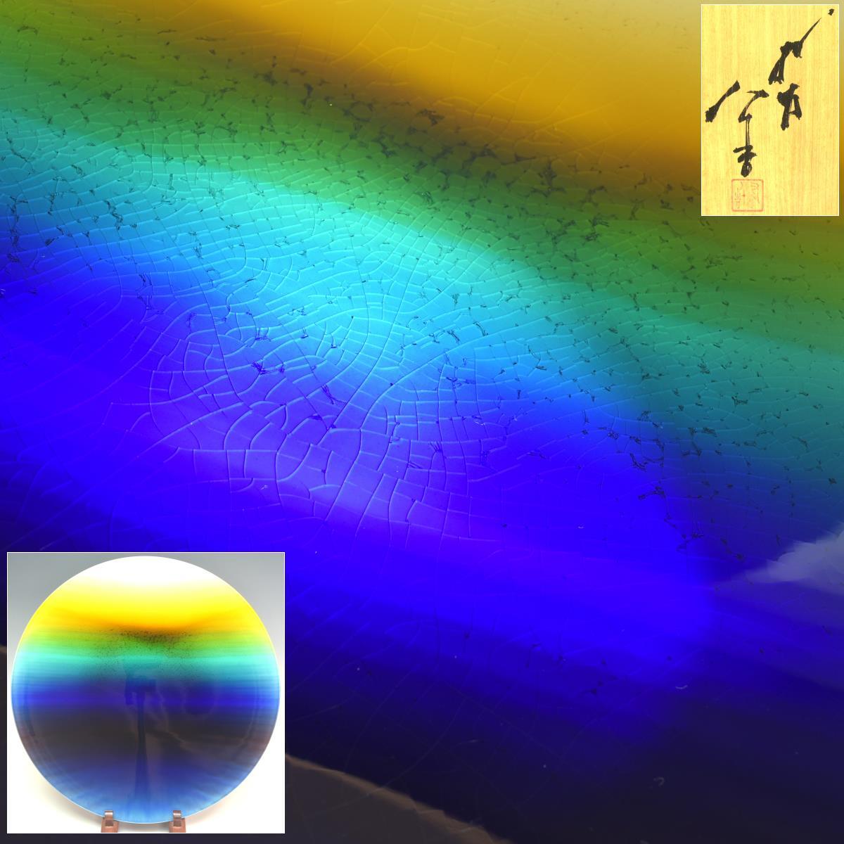 - 三代 徳田八十吉作 「れい明」人間国宝 希少秀逸作品 直径39,3cm 共箱 共布 本物保証 M2151【趣楽】
