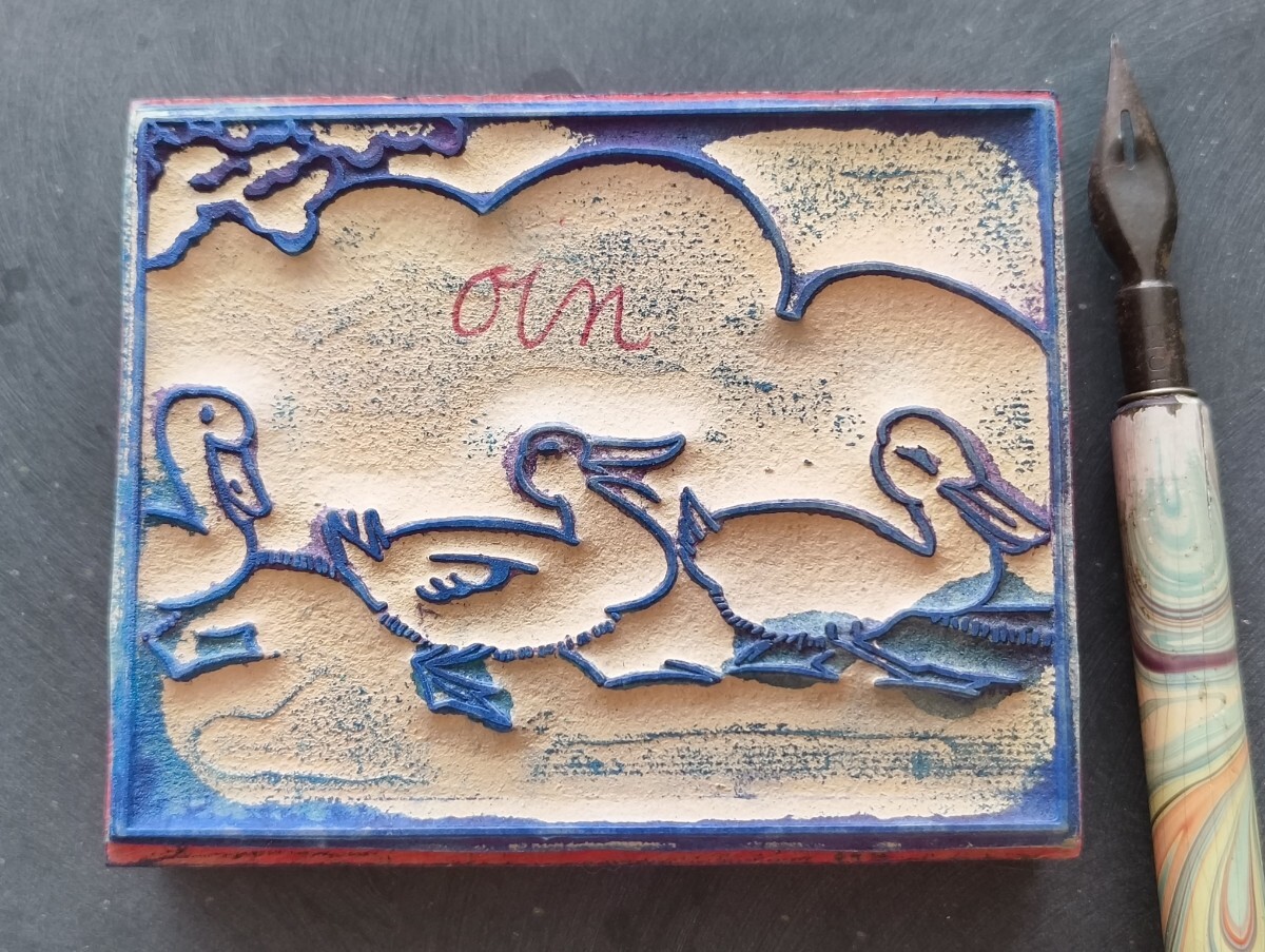 - 大 鴨 アヒル 群れ カルガモ フランス アンティーク 子供 スタンプ ヴィンテージ ハンコ イラスト 素材 ペット 家畜 飼育 放し飼い レトロ