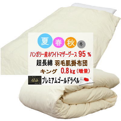 - ダウンケット キング 肌掛布団 ハンガリー産ホワイトマザーグース プレミアムゴールドラベル 超長綿 夏用 マザーグース 日本製