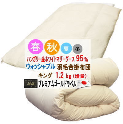 - 羽毛布団 キング 合掛布団 ハンガリー産ホワイトマザーグース プレミアムゴールドラベル ウォッシャブル マザーグース 日本製 生成り