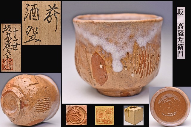> 坂高麗左衛門 12代 ★ 萩ぐい呑 ★ 共箱共布栞 ★ 櫛目タイプ ★ 人気陶芸家 ★ 物故作家 ★ 櫛目がデザイン