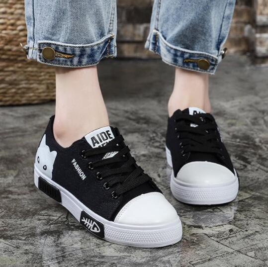 > 新入荷強くお勧め スニーカー レディース靴シューズ スリッポン キャンバス ローカット歩きやすい デザイン軽量通気性 夏 猫 ブラック 24cm