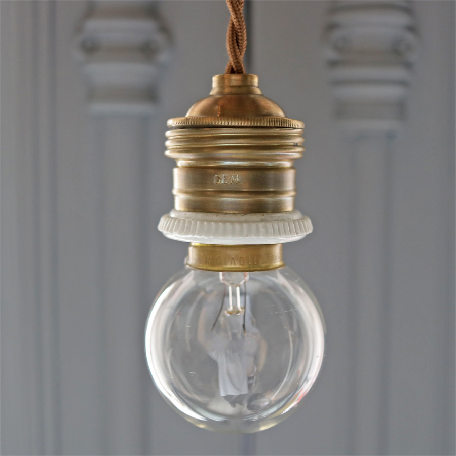 - 1920年代 フランス アンティーク 飴色 陶器 フランジ 真鍮 ソケット ランプ E*/吊り下げ 英国 北欧 照明 イギリス カフェ アトリエ ライト
